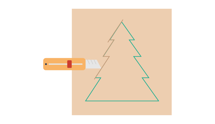 Bruk en saks, en kniv eller en linjal, skjær gjennom pappen etter treformen. For å få et fint kutt, bruk det verktøyet som er mest presist.