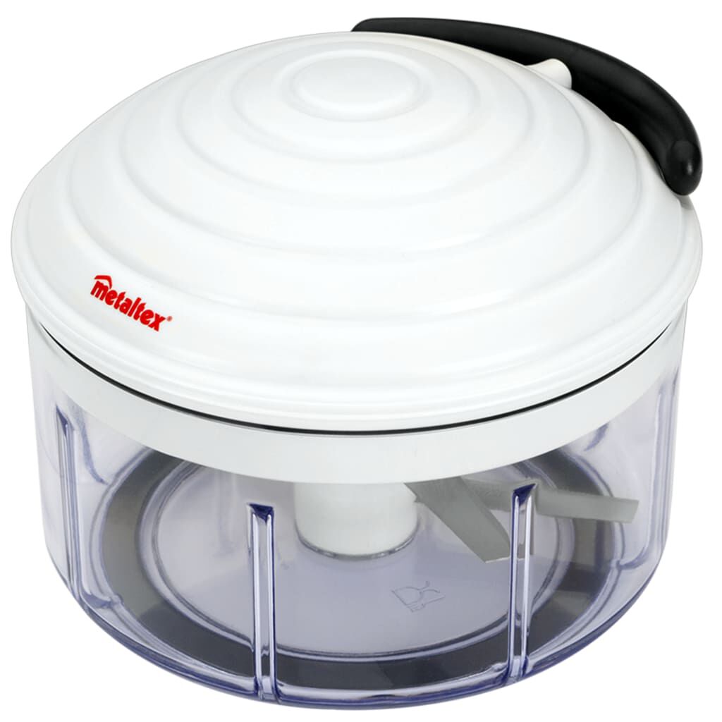 Den revolusjonerende grønnsakskutteren Rotomac fra Metaltex er et prisbelønt matlagingsverktøy med skarpe, bevegelige kniver. Den kutter grønnsaker, frukt og urter fra grov til fin på få sekunder.