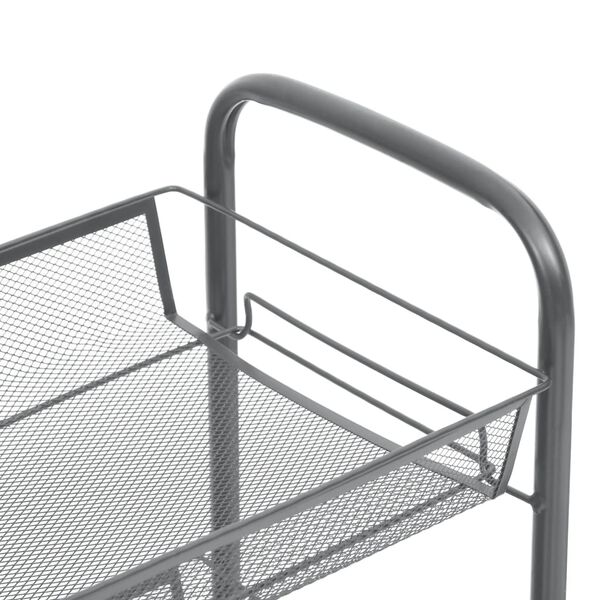 Denne husholdningsvognen har jernkonstruksjon som gjør den solid og slitesterk. Den plassbesparende vognen har 4 hjul, og 2 hjul har bremser for enkel flytting og stopping. Nettingkurvene er sterke og avtakbare, noe som tilbyr ekstra oppbevaringsplass og lar deg utnytte rommet fullt ut. Vognen er ideell for oppbevaring av leker, nøkler, mat osv.