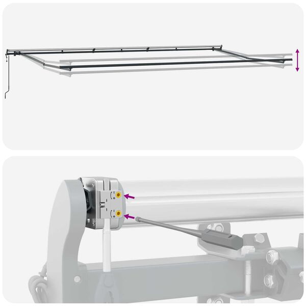Denne moderne uttrekkbare markisen har en stilren, minimalistisk look som passer perfekt til enhver balkong eller utendørsområde. Den er laget for å være enkel og effektiv, med klare linjer som matcher moderne design samtidig som den tilbyr solid skygge for hjemmet eller bedriften. Den brukervennlige funksjonen for å trekke den ut, styrt med fjernkontroll, lar deg justere den enkelt og holder deg komfortabel hele dagen. Det glatte, tette stoffet gir en ekstra touch av eleganse til uteplassen din.