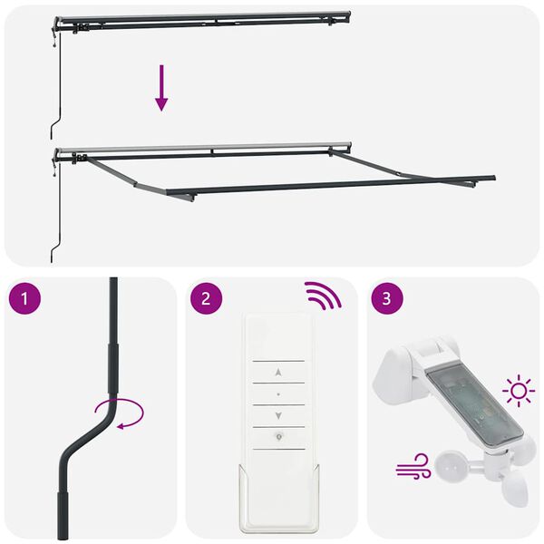 • Automatisk funksjon: Du kan enkelt åpne og trekke inn markisen via den medfølgende fjernkontrollen.