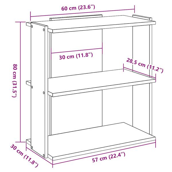 vidaXL Bokhylle 3 etasjer svart 60x30x80 cm konstruert tre