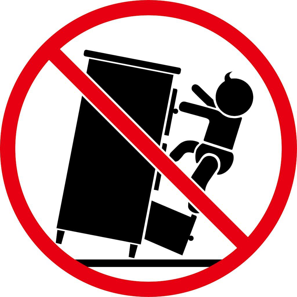 • For å forhindre at produktet velter, må det brukes med den medfølgende festeanordningen.