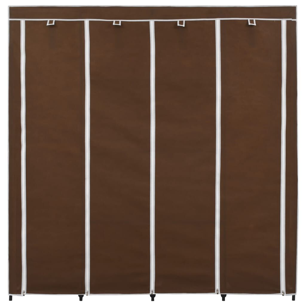 Det er preget av en solid jernramme, noe som gjør klesstativet enkelt å bevege og svært holdbart. I tillegg har det fire rom, og tilbyr nok plass til å holde vesker, sko eller småting organisert og i nærheten. Stofftrekket med glidelås beskytter klærne dine mot smuss og støv.