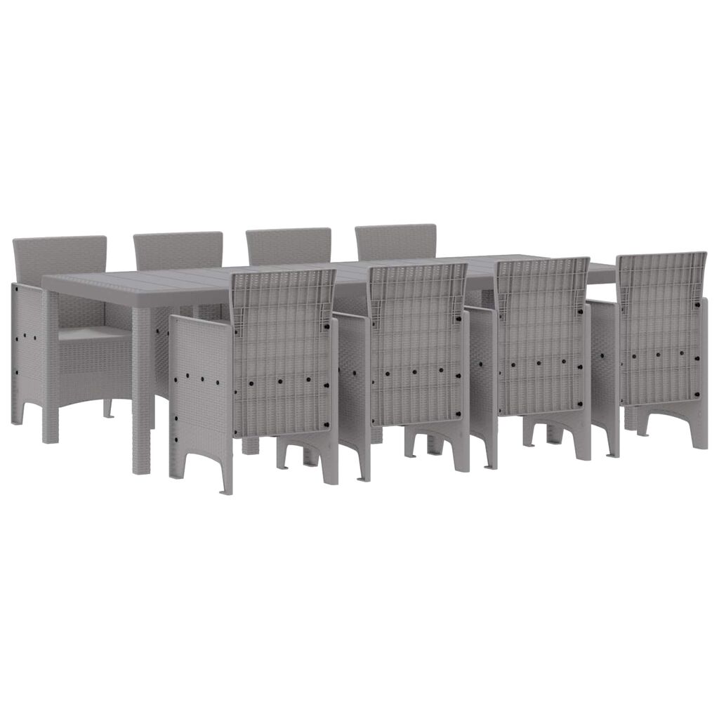 Dette elegante Modern Garden Dining Set kombinerer slank, moderne design med praktisk funksjonalitet, og gjør det til det perfekte tillegget til utendørsområder. Ideelt for al fresco dining i løpet av sommermånedene, støtter den rektangulære konfigurasjonen familietreff og elegante middagsselskaper. Med fokus på enkelhet og funksjonalitet, kombinerer dette settet rene linjer og minimal ornamentering for å skape et rolig utendørs miljø.