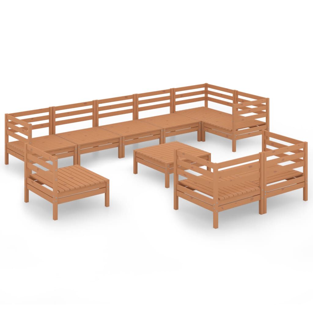 vidaXL Hagesofagruppe 10 deler heltre furu honningbrun