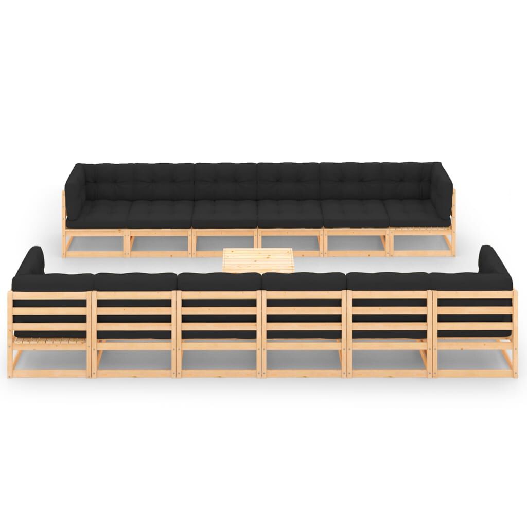 vidaXL Hagesofagruppe med antrasitt puter 13 deler heltre furu