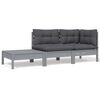vidaXL Hagesofagruppe med grå puter 3 deler heltre furu