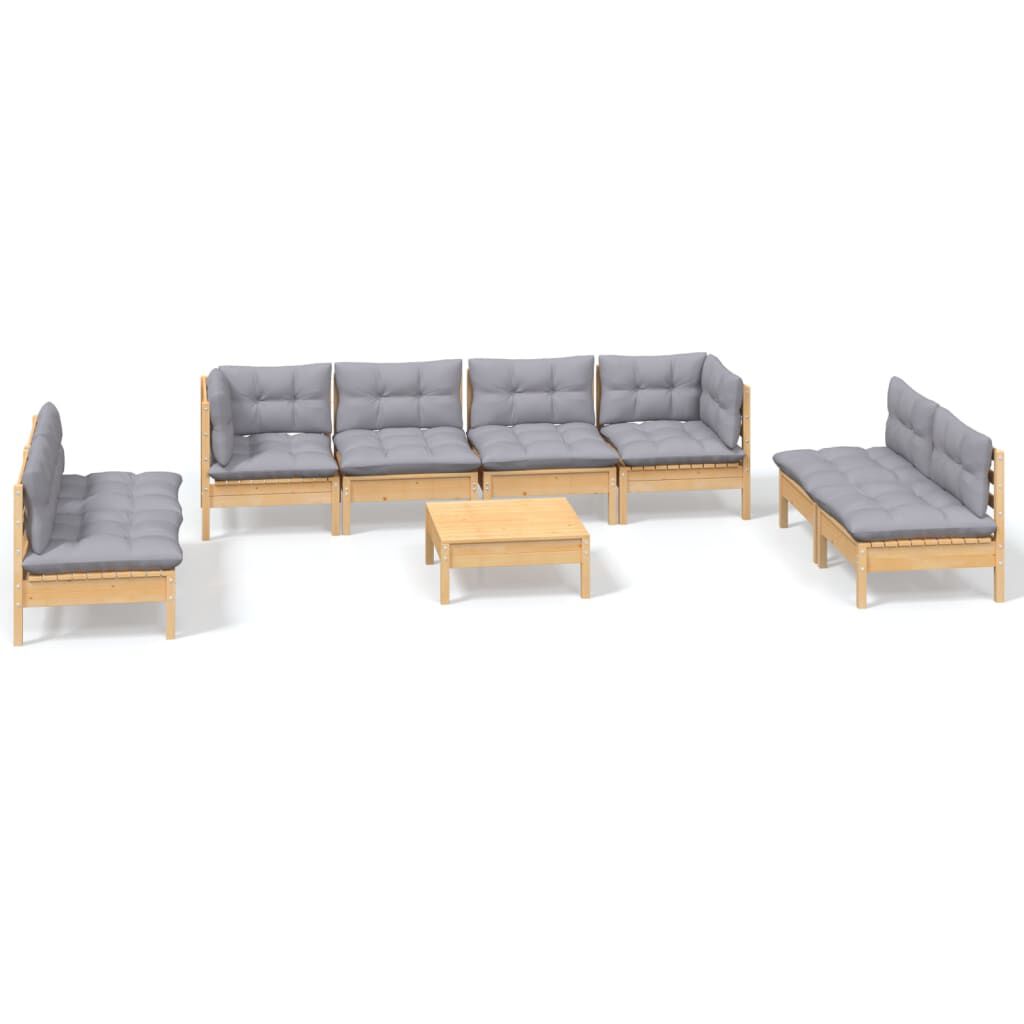 vidaXL Hagesofagruppe med grå puter 9 deler heltre furu