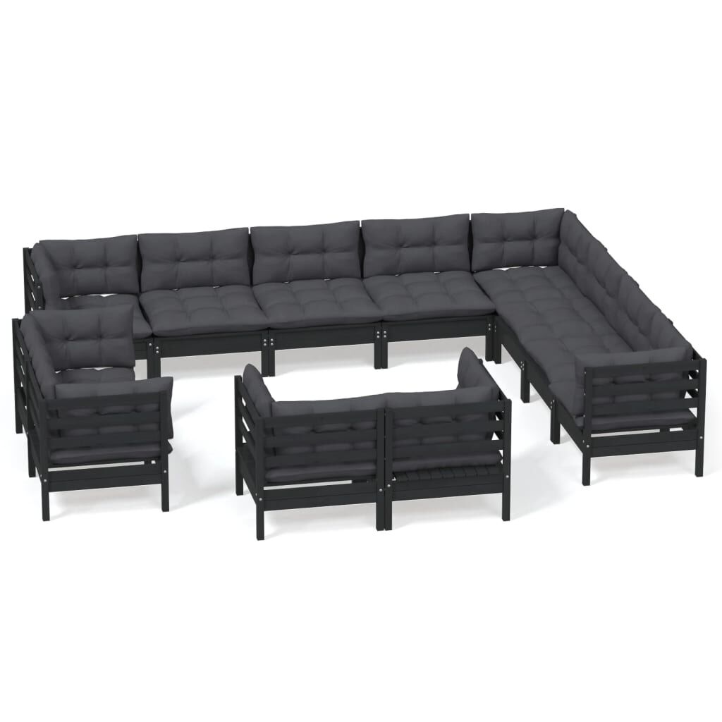 vidaXL Hagesofagruppe med puter 12 deler heltre furu svart
