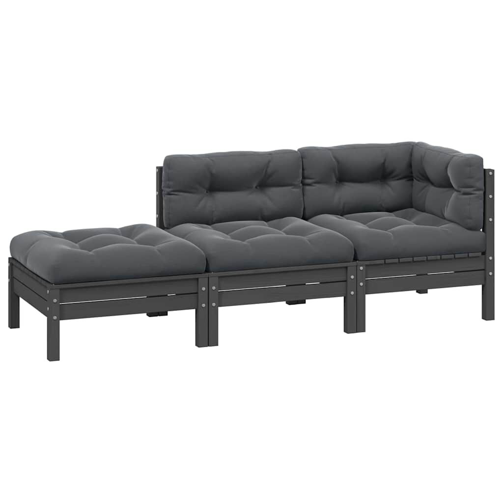 vidaXL Hagesofagruppe med puter 3 deler grå heltre furu
