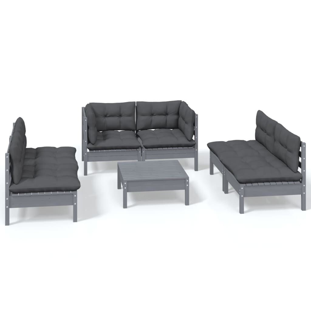 vidaXL Hagesofagruppe med puter 7 deler heltre furu