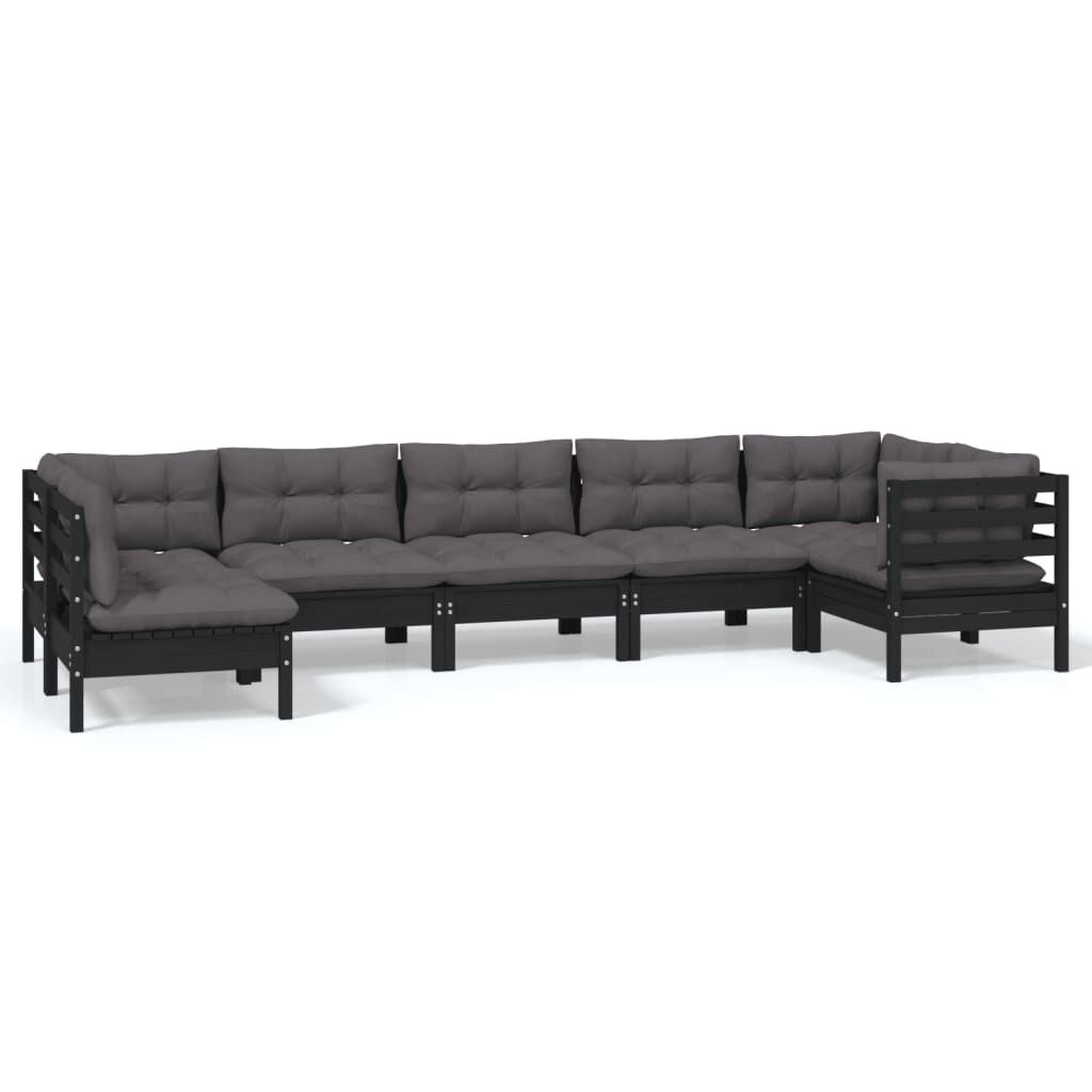 vidaXL Hagesofagruppe med puter 7 deler svart furu