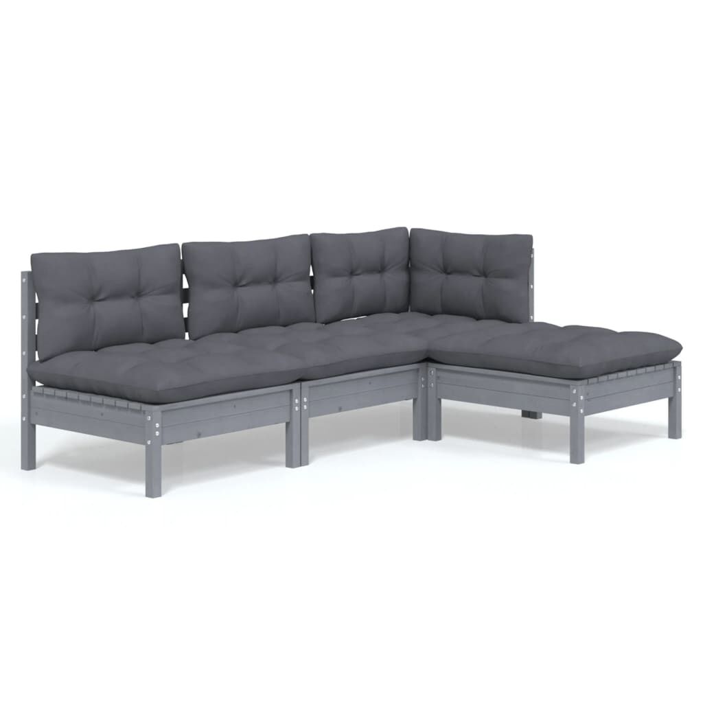 vidaXL Hagesofagruppe med puter grå 4 deler furu
