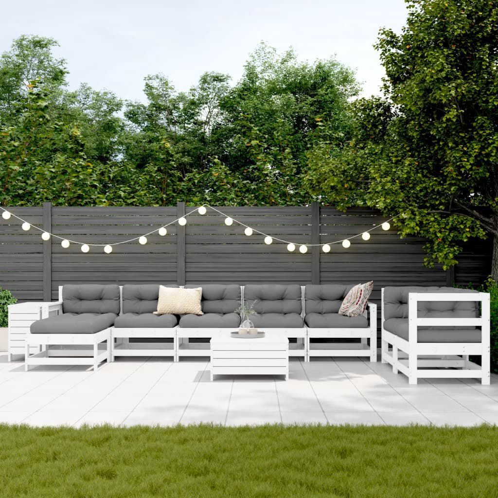 vidaXL Hagesofasett 10 deler hvit heltre furu