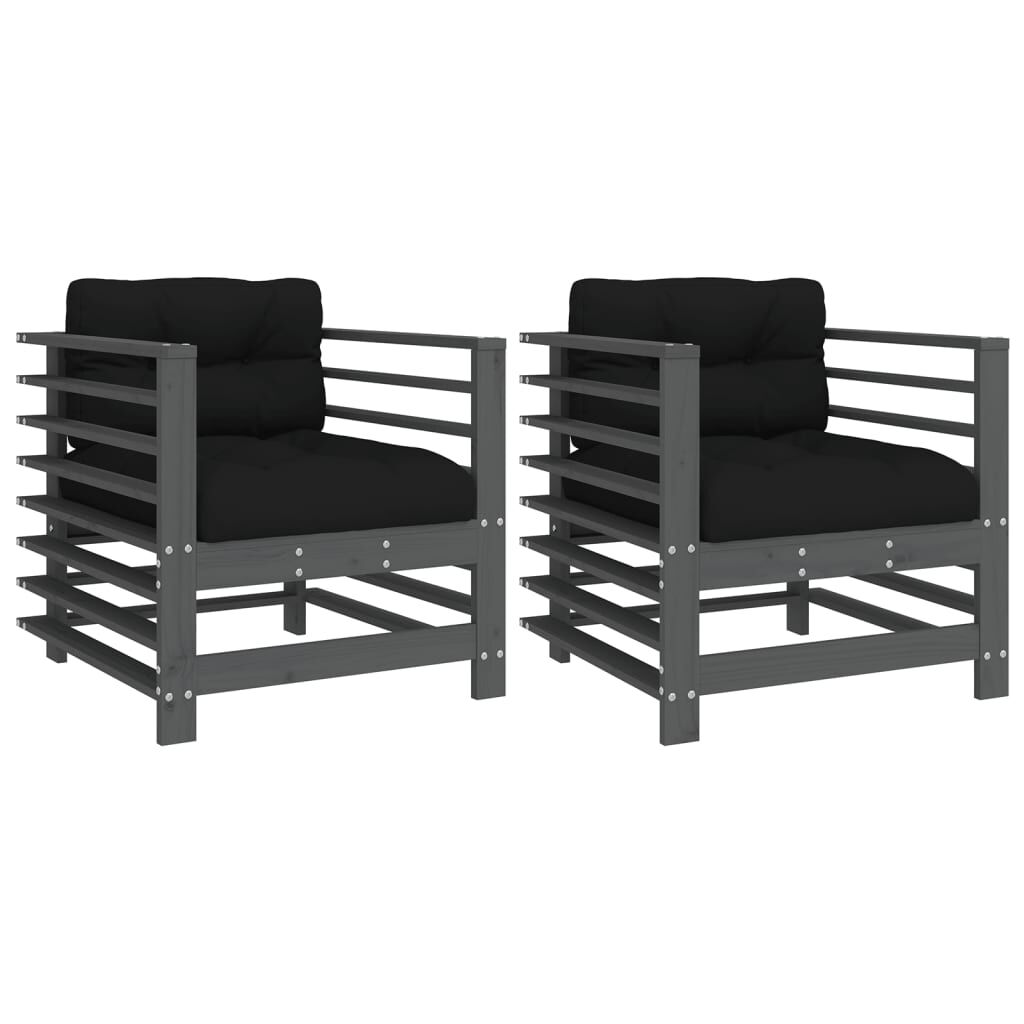 vidaXL Hagestoler med puter 2 stk grå heltre furu