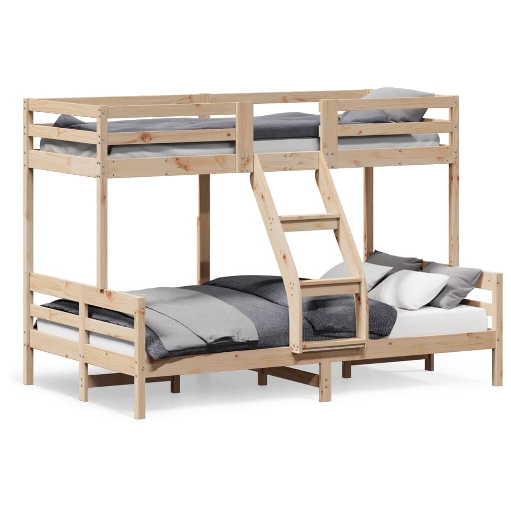 Denne køyesengen i tre er elegant og funksjonell, noe som gjør den til et perfekt tillegg til ethvert rom med begrenset plass.