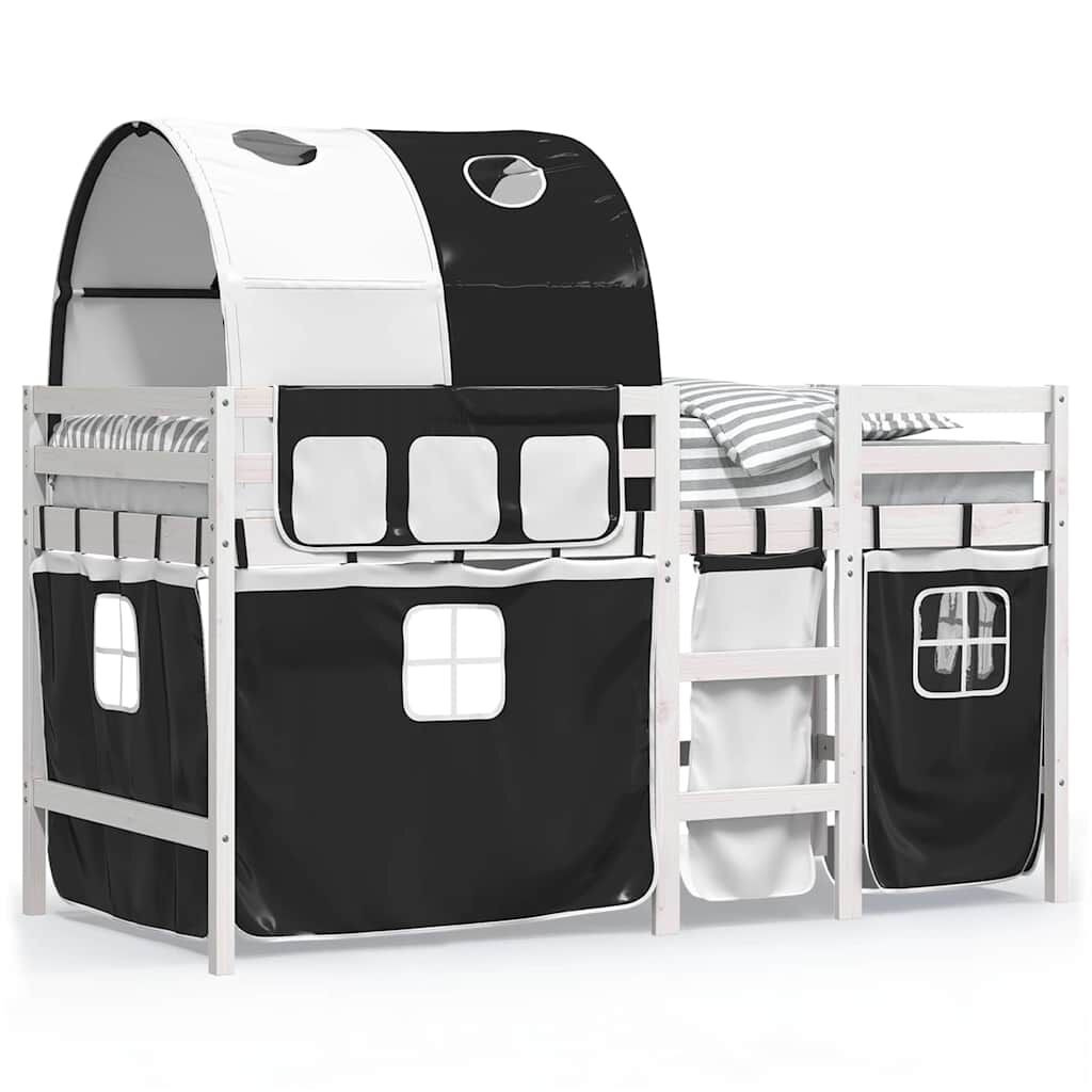 vidaXL Køyeseng for barn tunnel hvit og svart 90x190 cm heltre furu