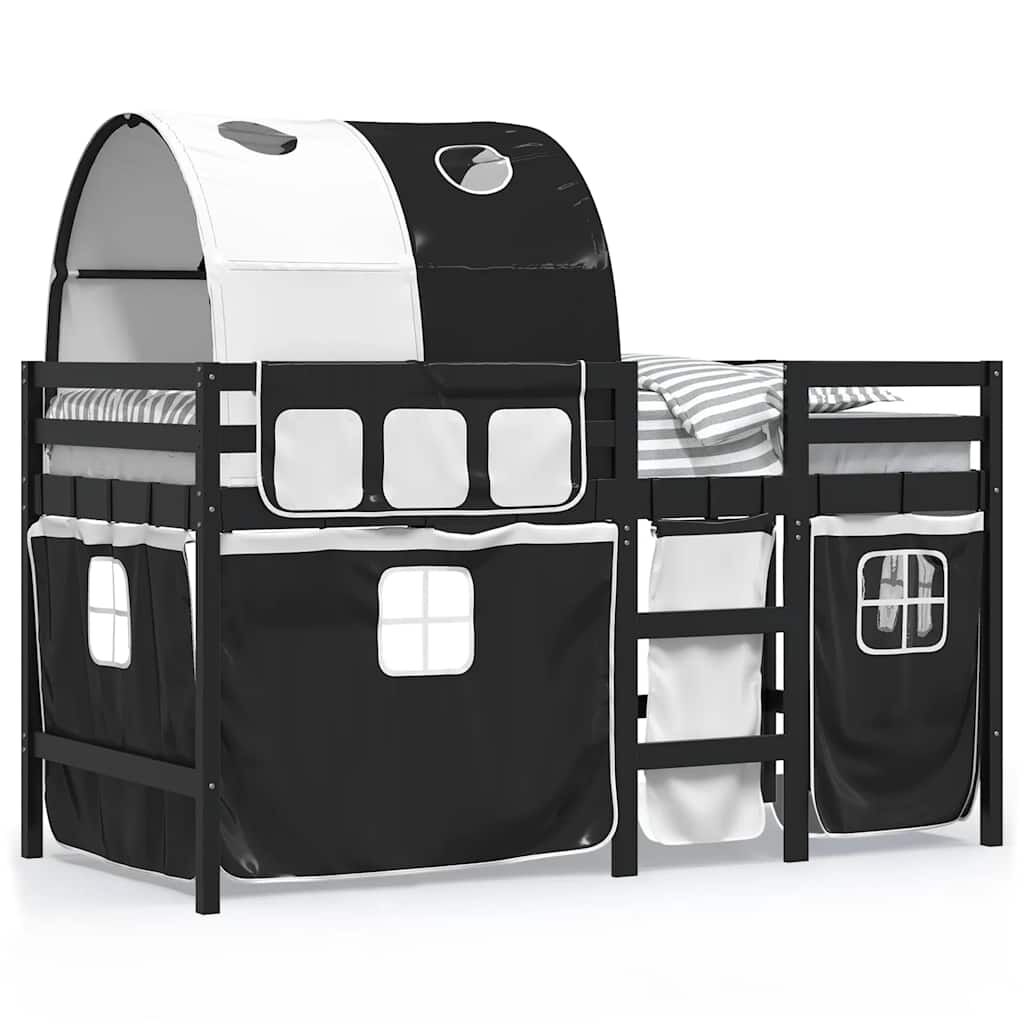 vidaXL Køyeseng for barn tunnel hvit og svart 90x190 cm heltre furu