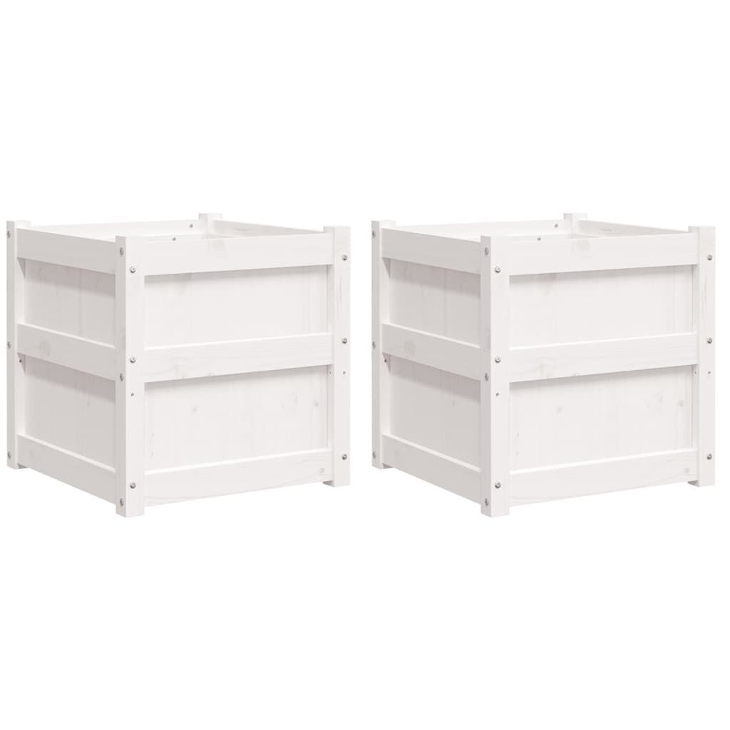 vidaXL Plantekasser 2 stk hvit heltre furu