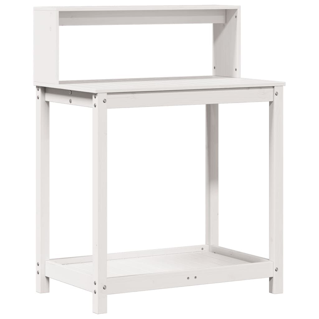 vidaXL Pottebord med hyller hvit 82,5x50x109,5 cm heltre furu