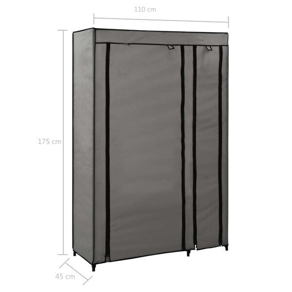 Dine klær vil alltid holdes i orden. Siden det er sammenleggbart, er det plassbesparende og enkelt å montere. Døren kan rulles opp og festes med borrelås, noe som beskytter klærne dine fra støv og smuss. Glidelåsene er enkle å åpne og lukke. Trekket til garderoben er laget av fleecestoff og rammen er laget av stålrør.