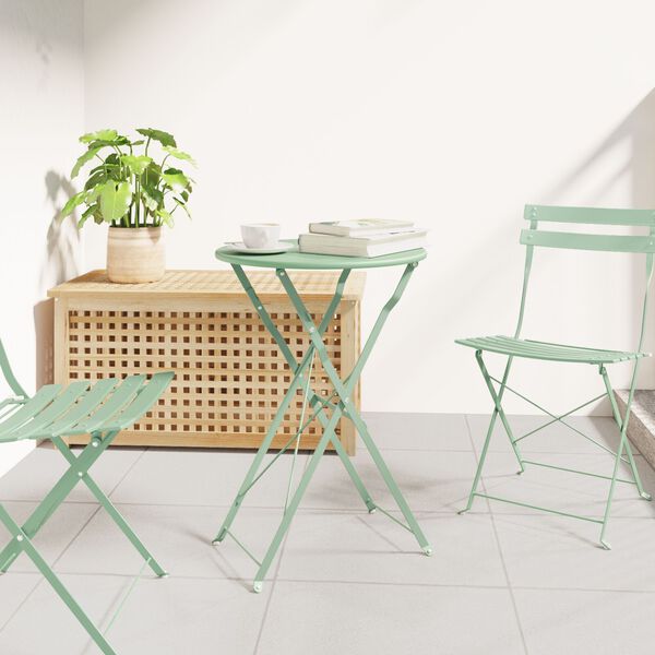 Dette stilige Stål sammenleggbare bistrobordet blander moderne design med praktisk funksjonalitet, og er perfekt for enhver hage eller terrasse. Den moderne looken, med enkle linjer og uten for mye dilldall, er akkurat det som trengs for de som liker litt subtil eleganse. Med en diameter på Ø50 cm er det akkurat passe størrelse for å samles rundt, og det passer perfekt i mindre rom – ideelt for intime utemiddager.