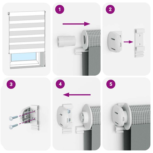 • To monteringsmåter: Du kan feste sebrarullgardinen til veggen eller vinduet med skruer eller uten å bore ved hjelp av klemmebraketter, avhengig av dine behov.