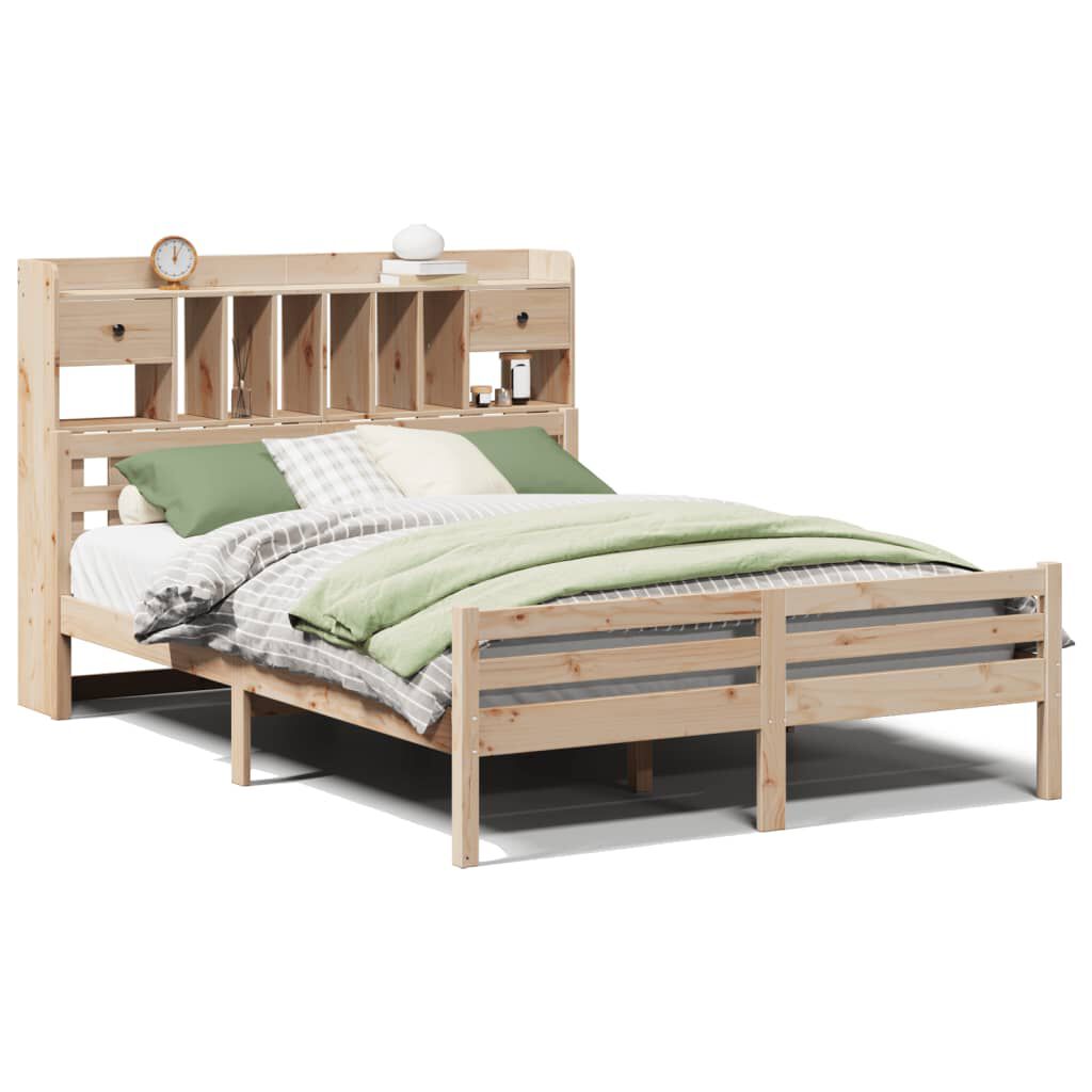 vidaXL Seng med bokhylle uten madrass 150x200 cm heltre furu