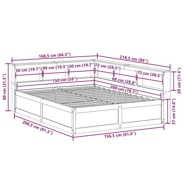 vidaXL Seng med bokhylle uten madrass 150x200 cm heltre furu