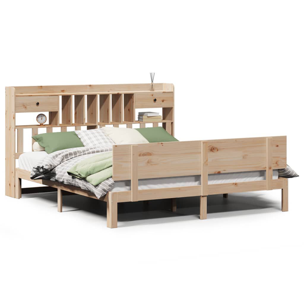 vidaXL Seng med bokhylle uten madrass 180x200 cm heltre furu
