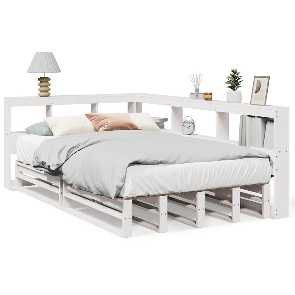vidaXL Seng med bokhylle uten madrass hvit 120x200 cm heltre furu