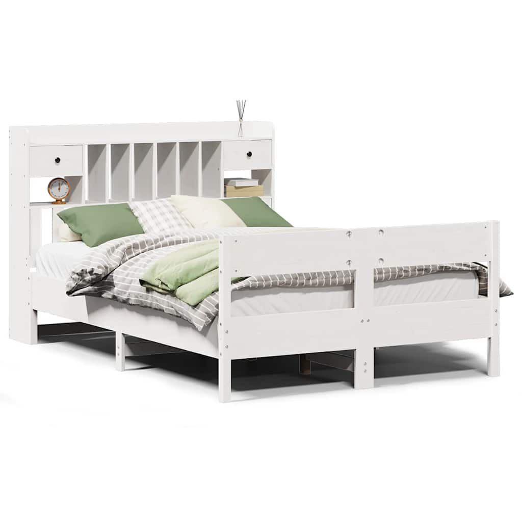 vidaXL Seng med bokhylle uten madrass hvit 140x200 cm heltre furu
