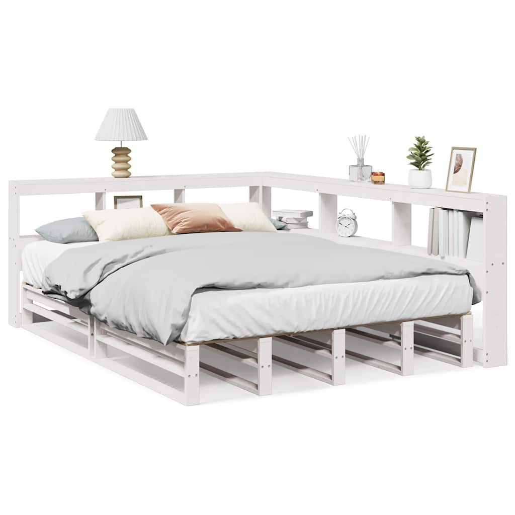 vidaXL Seng med bokhylle uten madrass hvit 160x200 cm heltre furu
