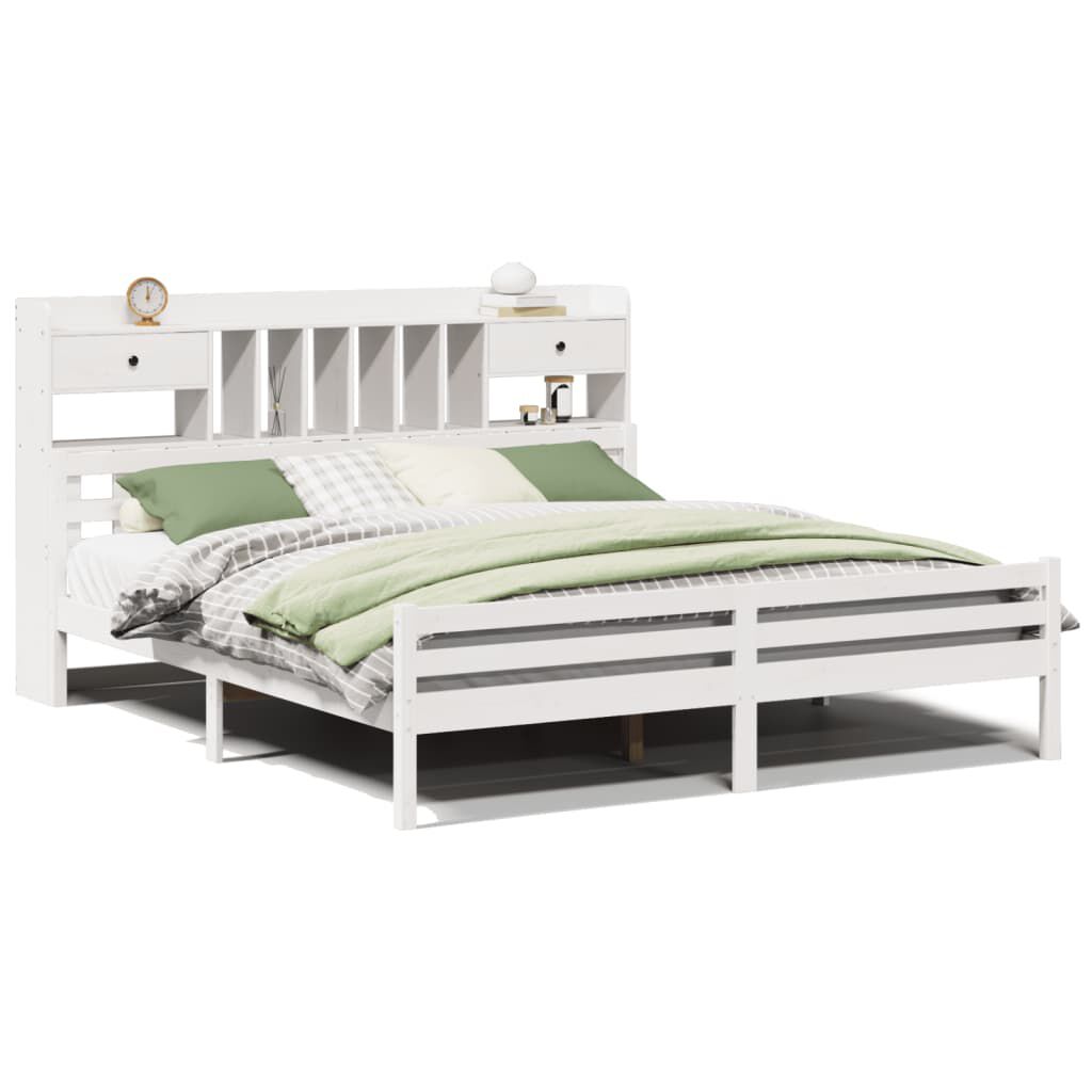 vidaXL Seng med bokhylle uten madrass hvit 180x200 cm heltre furu