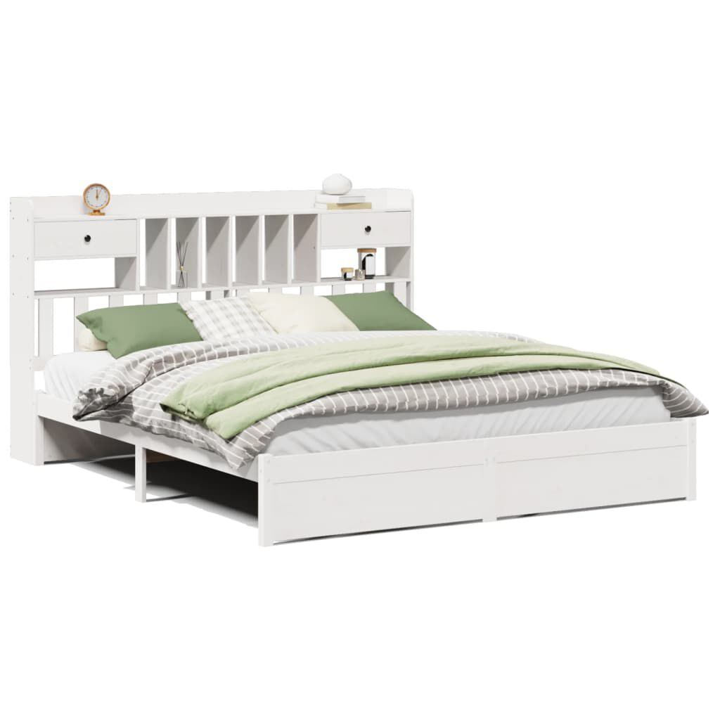 vidaXL Seng med bokhylle uten madrass hvit 180x200 cm heltre furu