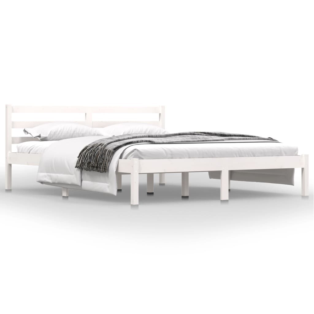 vidaXL Sengeramme heltre furu 150x200 cm hvit King Size