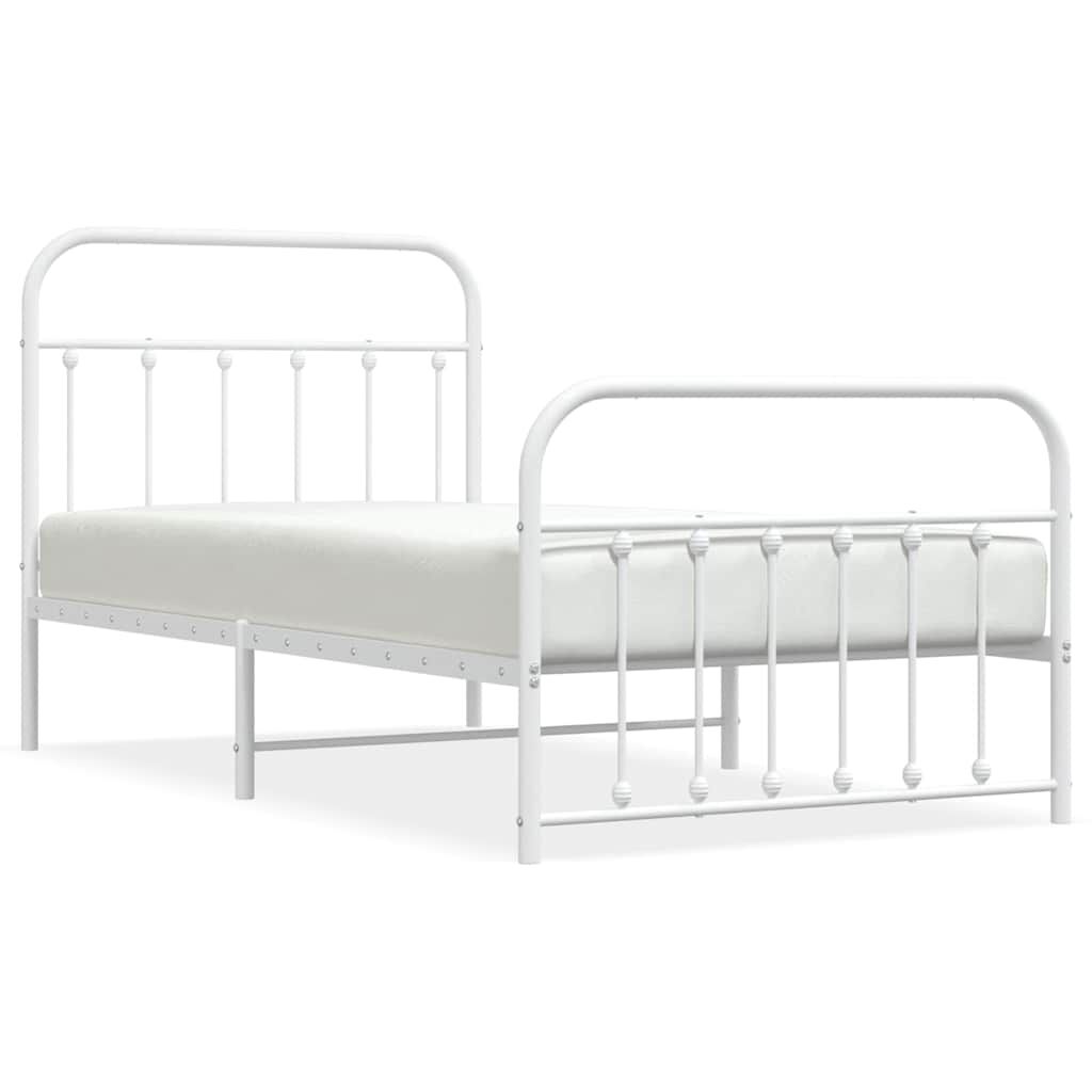 vidaXL Sengeramme i metall med hode- og fotgavl hvit 100x190 cm