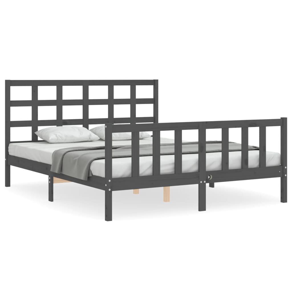 vidaXL Sengeramme med hodegavl grå King Size heltre