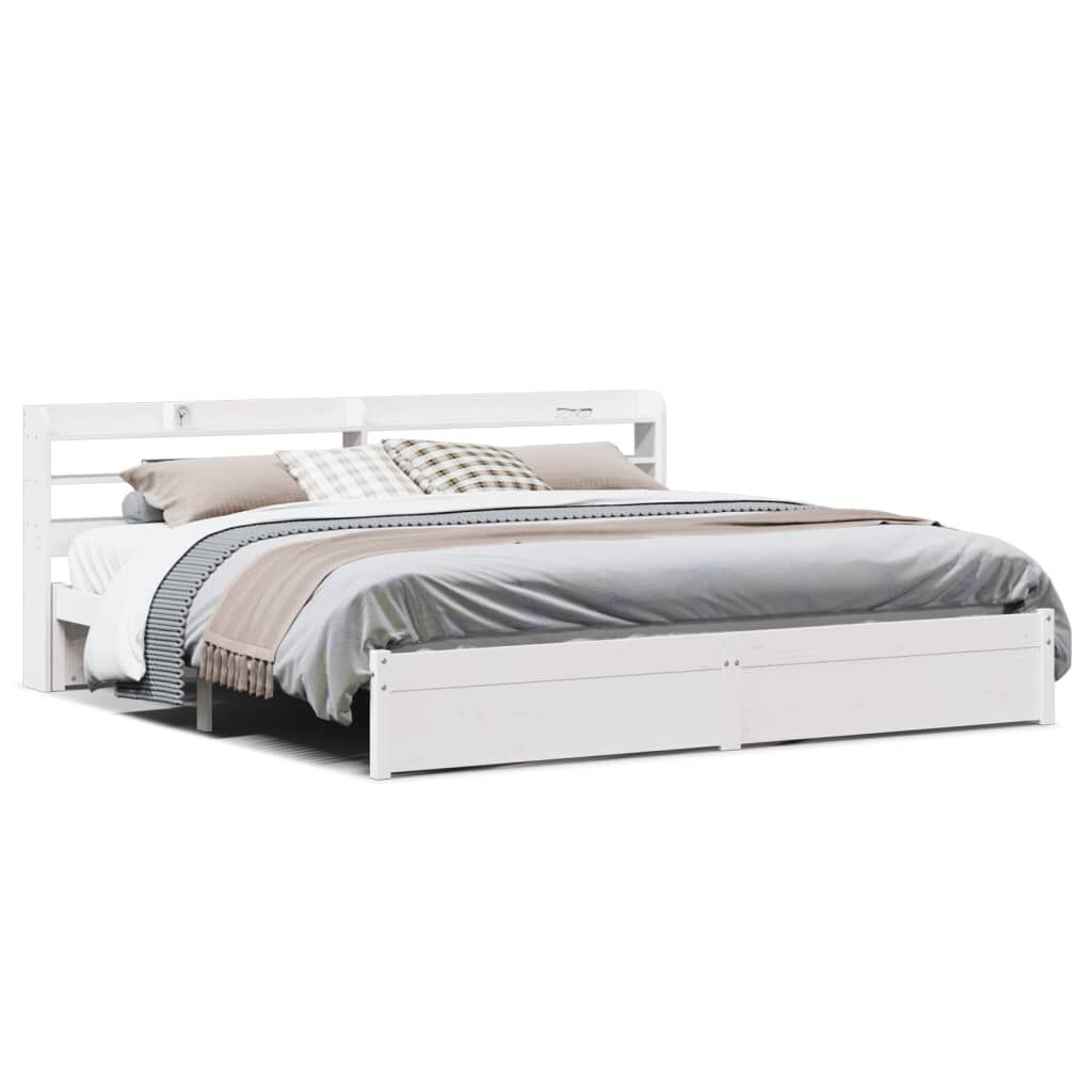 vidaXL Sengeramme med hodegavl hvit 200x200 cm heltre furu