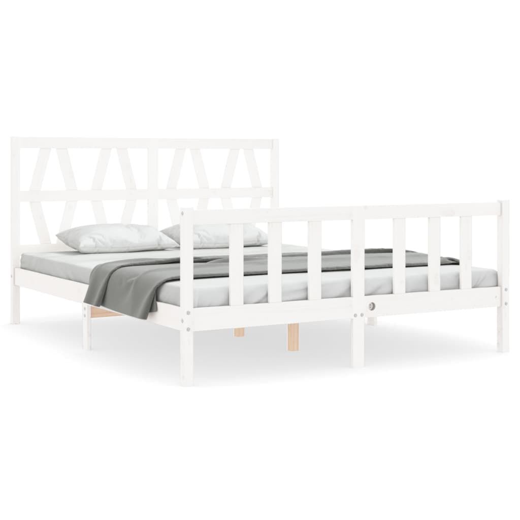 vidaXL Sengeramme med hodegavl hvit King Size heltre