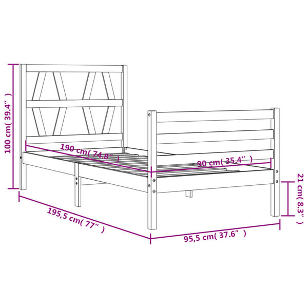• Samlet mål seng: 195,5 x 95,5 x 100 cm (L x B x H)