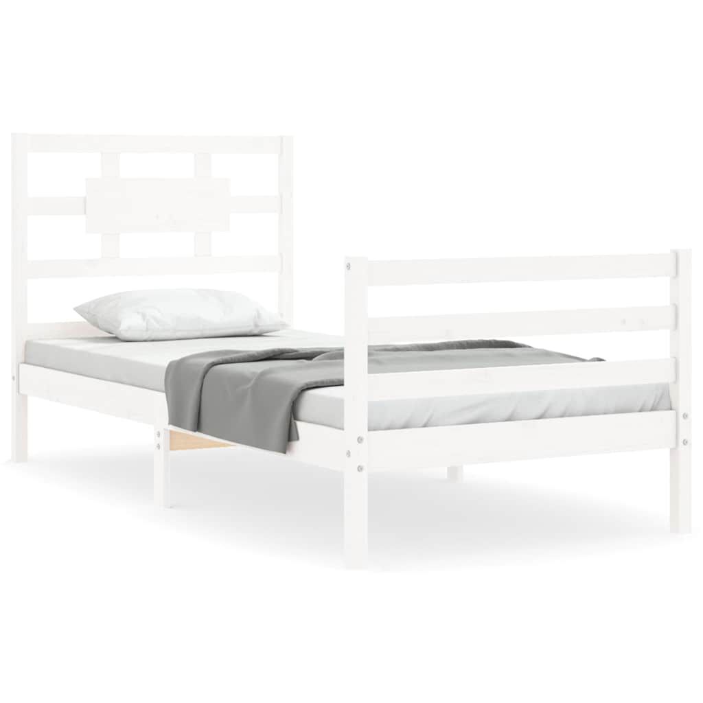 vidaXL Sengeramme med hodegavl hvit single heltre
