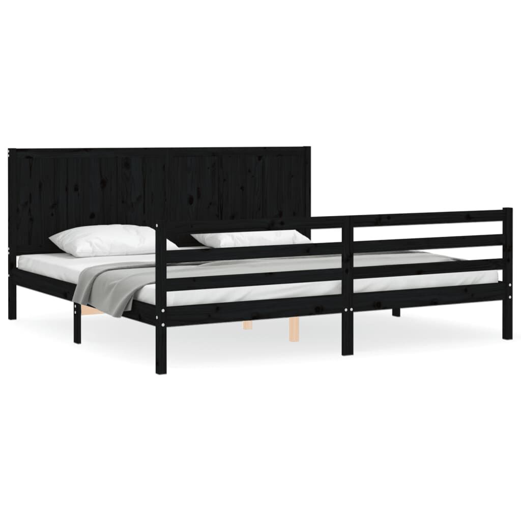 vidaXL Sengeramme med hodegavl svart 200x200 cm heltre