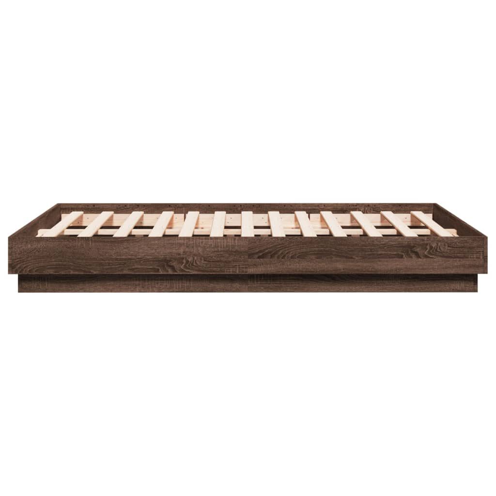 vidaXL Sengeramme med LED-lys brun eik 135x190 cm