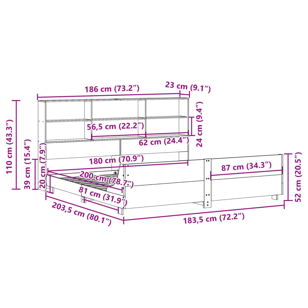 • Mål egnet madrass: 180 x 200 cm (B x L) (madrassen er ikke inkludert)