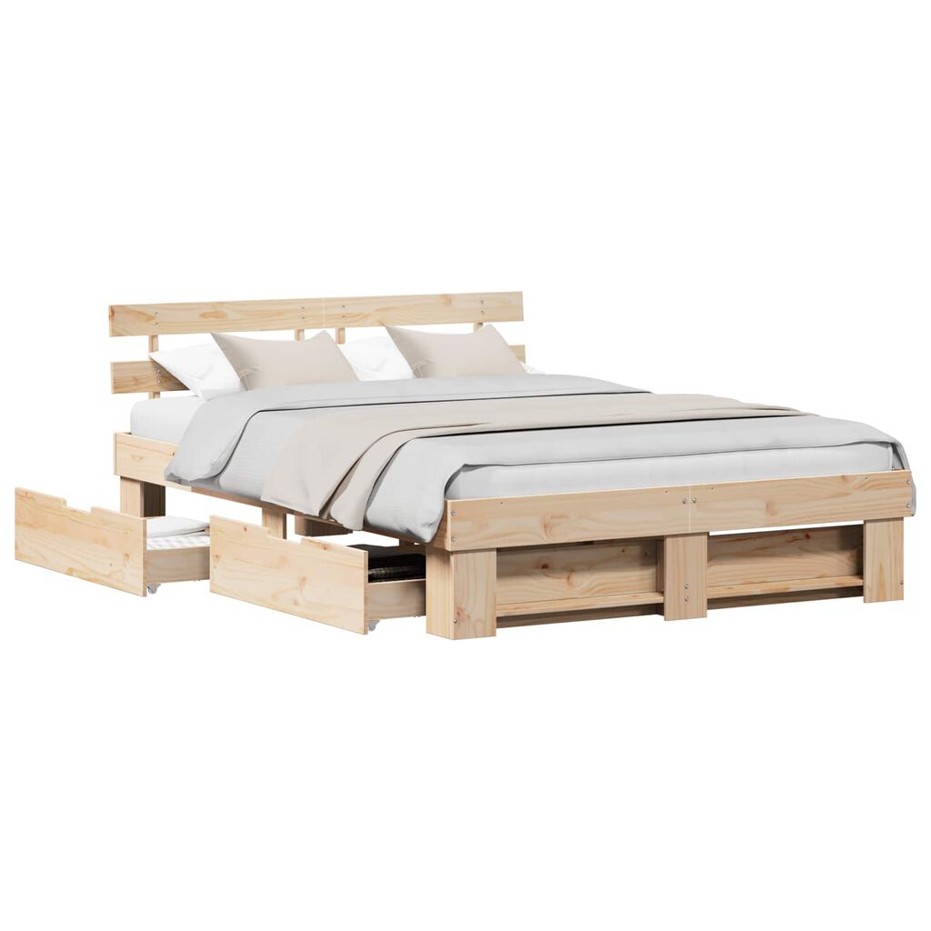 vidaXL Sengestamme med hodegjerde Brun 160 x 200 cm Massiv furu
