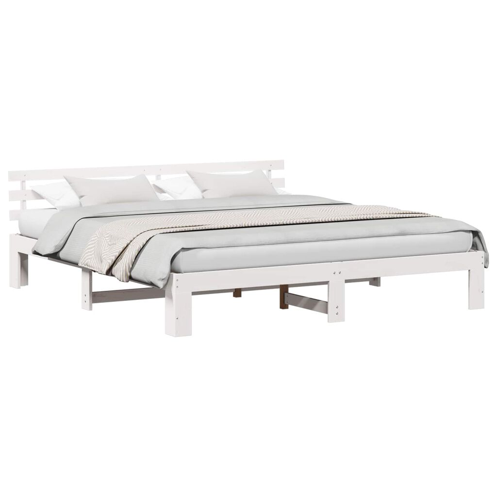 vidaXL Sengestamme med hodegjerde Hvit 200 x 200 cm Massiv furu