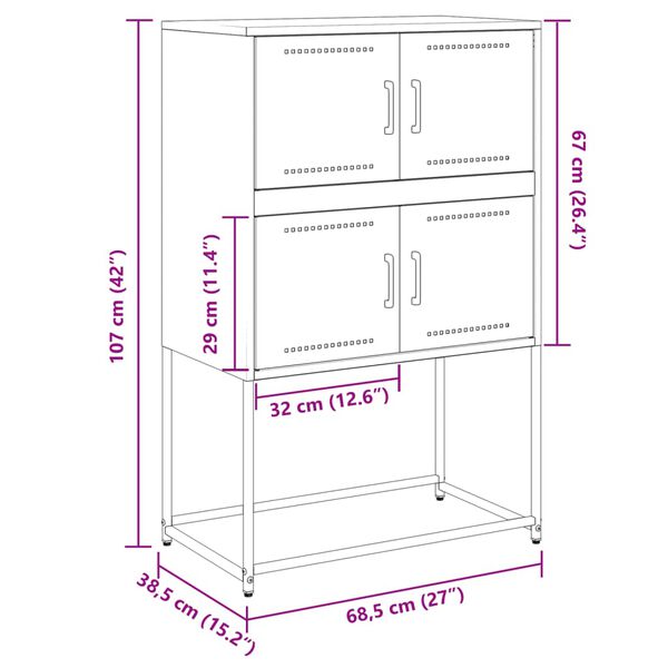 vidaXL Skjenk antrasitt 68,5x38,5x107 cm stål