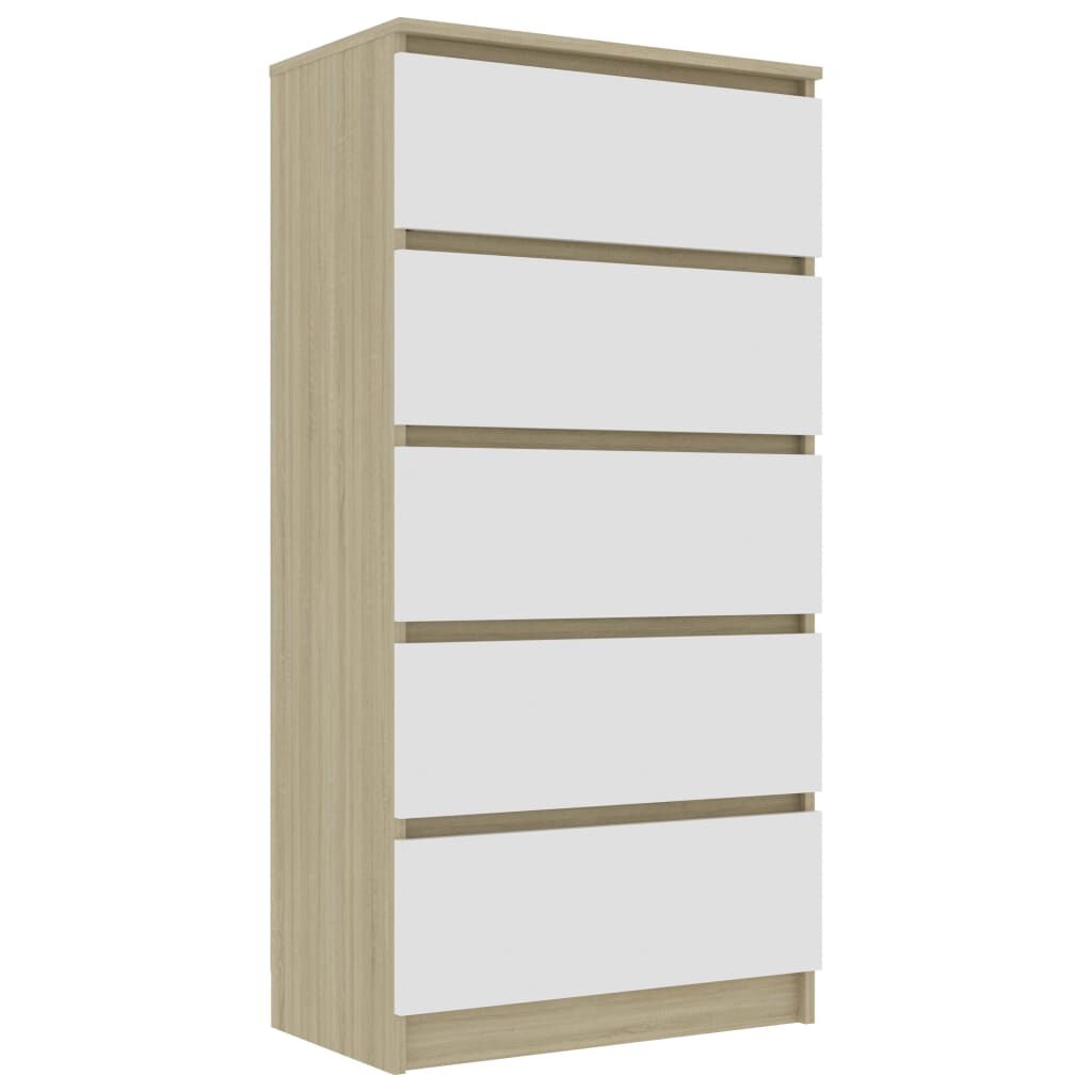 Skjenken med 5 skuffer gir god oppbevaringsplass for bøker, multimediaapparater og andre gjenstander. Den solide bordplaten er ideell for utstilling av dekorative gjenstander, bilder eller potteplanter. Den kan også brukes som lowboard, sideskap osv. Denne skjenken er bygget for å vare lenger med det førsteklasses konstruert tre. Den er også enkel å rengjøre med en fuktig klut.